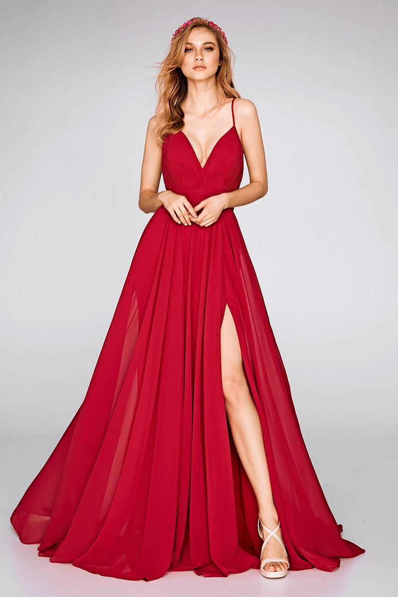 BEST BacklakeGirls Evening Dresses Formal V Neck Chiffon Long Sexy Red Evening Dress Special Party Dress