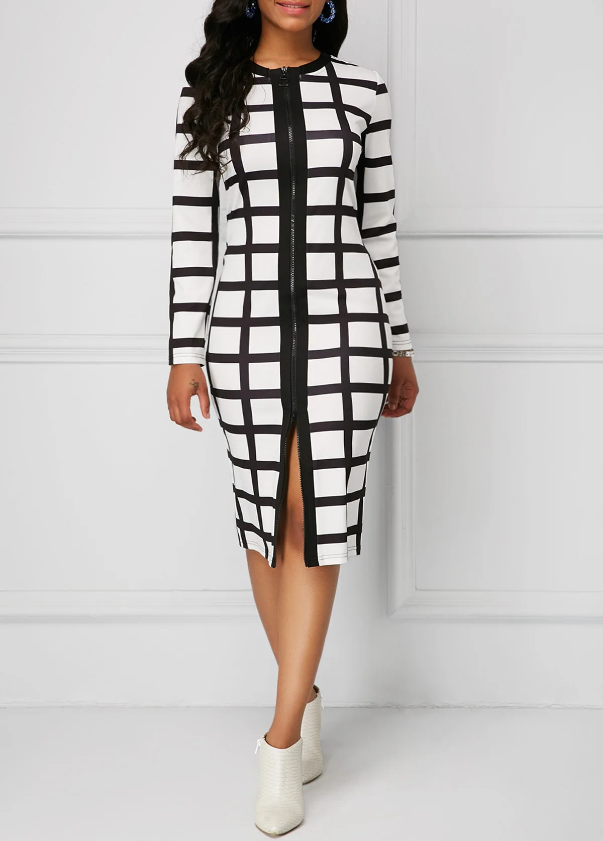 HOT SALE 2019 Plus Size Fashion Women Dress 5xl New Autumn And Winter Dress Casual Black And White Plaid Zip
