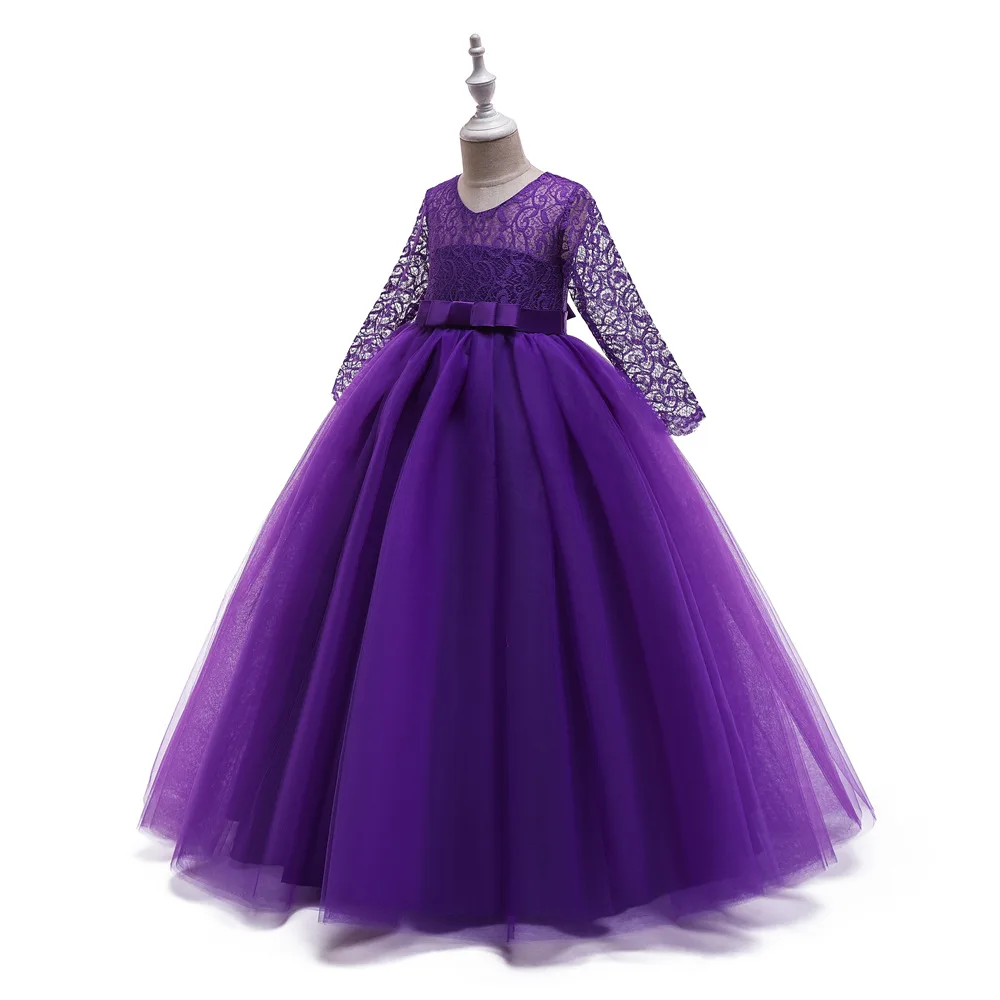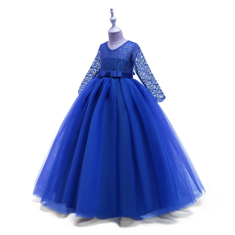 Hot Sales 3-14 Years Kids Party Dresses 2019 New Design Long Sleeves Flower Girl Dress For Weddings
